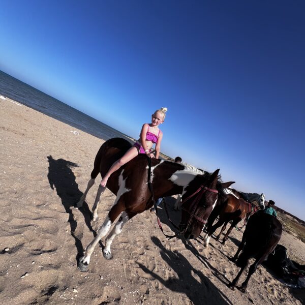 Geniet van zon, zee en vrijheid terwijl je rijdt langs de kust, met de bijzondere mogelijkheid om samen met het paard in zee te zwemmen.